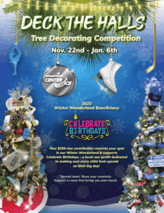 AdventHealth Center Ice is hosting a Christmas Tree Decorating Competition, where businesses and community members can donate to decorate a company or organization themed tree to benefit local children in our area. This year’s charity of choice supports the children of Joshua House through monthly birthday parties and special birthday entertainment!
